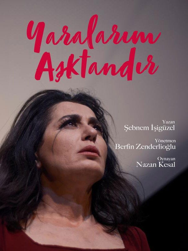 Sizlerle bu ay sahnede üç defa izleme fırsatı bulduğum Yaralarım Aşktandır oyununu biraz incelemek istiyorum. Nazan Kesal her farklı sahnesinde oyunu geliştirdi ve dönüştü. Öncelikle bu kadar yaşayarak oynanan bir tiyatro oyunu daha önce hiç izlememiştim. Eline emeğine gönlüne sağlık. Bizi İran’lı kadın şair Füruh Ferruhzad ile tanıştırdığı için ayrıca teşekkür ederim. Füruh’u tanımamak benim cahilliğim. Ama şiirleri ile asla tanışamayabilirdim Nazan Kesal oyunu olmasaydı.